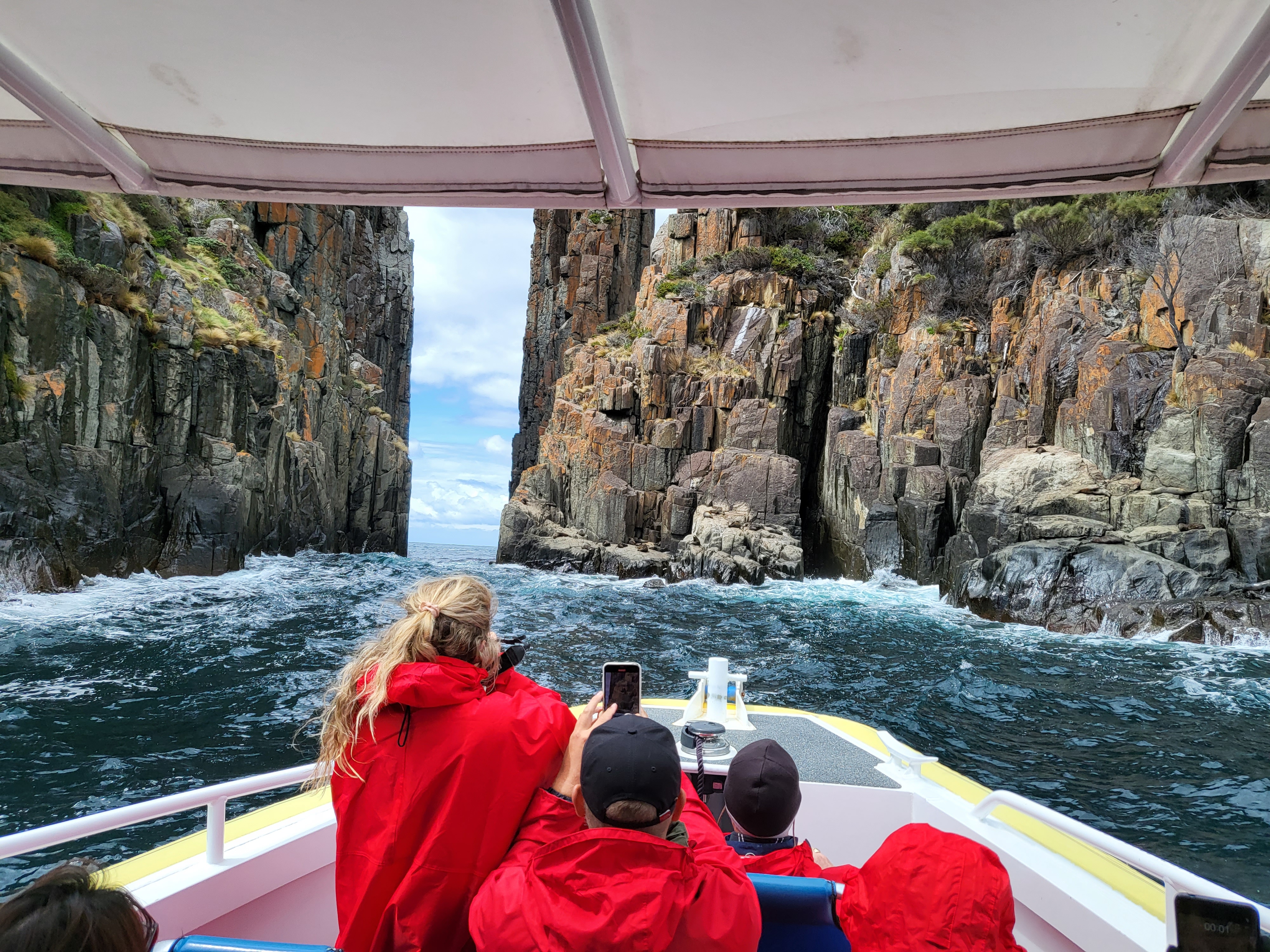 We then stopped by the spectacular dolerite cliffs of Cape Pillar for some photo-taking sessions. As the waves were getting rougher, the yellow boat bobbled up and down like a plastic bottle in the water. At this point in time, some passengers could not hold any longer and started to vomit.